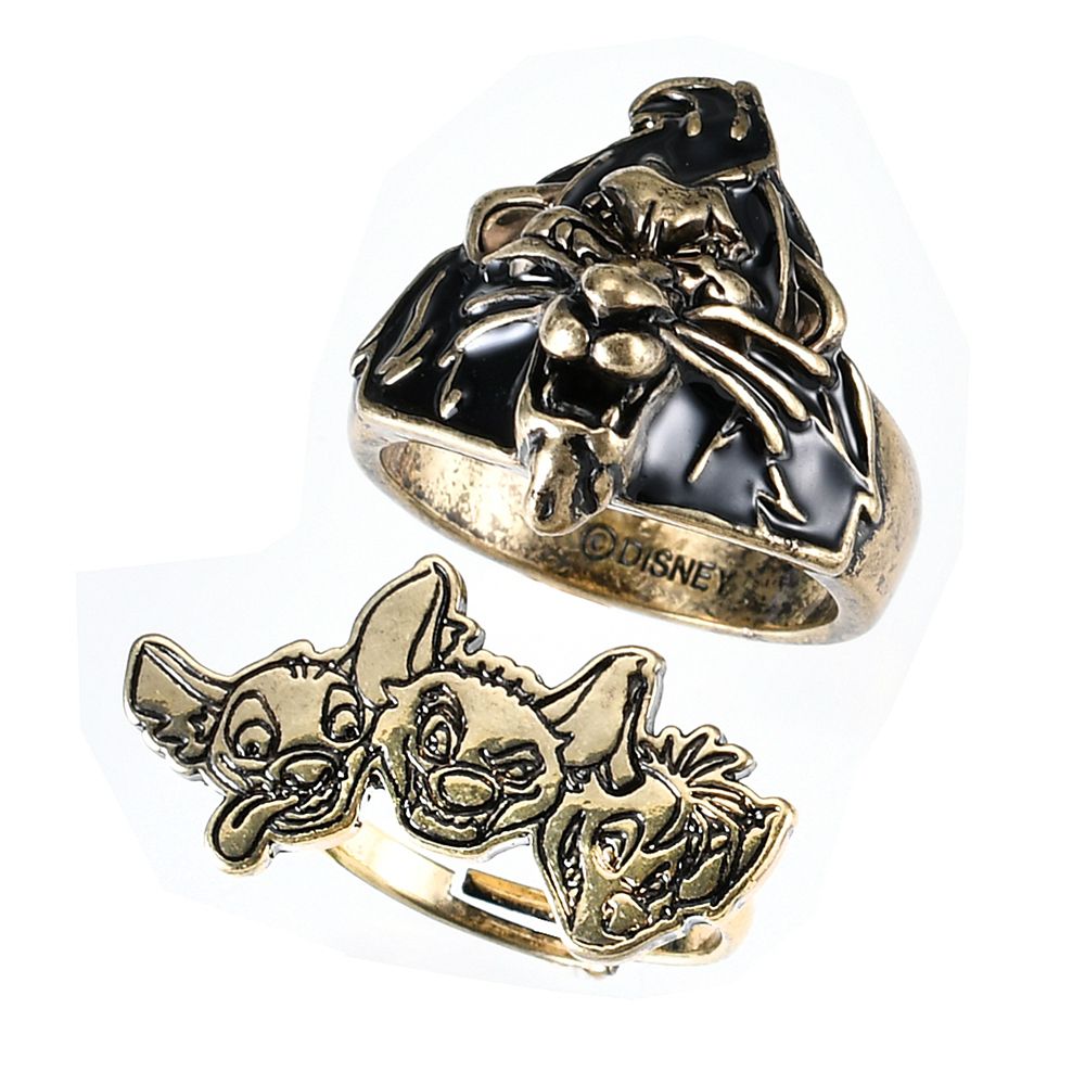 ディズニーヴィランズのスカーと、ハイエナのキャラクター、シェンジ、バンザイ、エドのデザイン。リングセットが登場です。