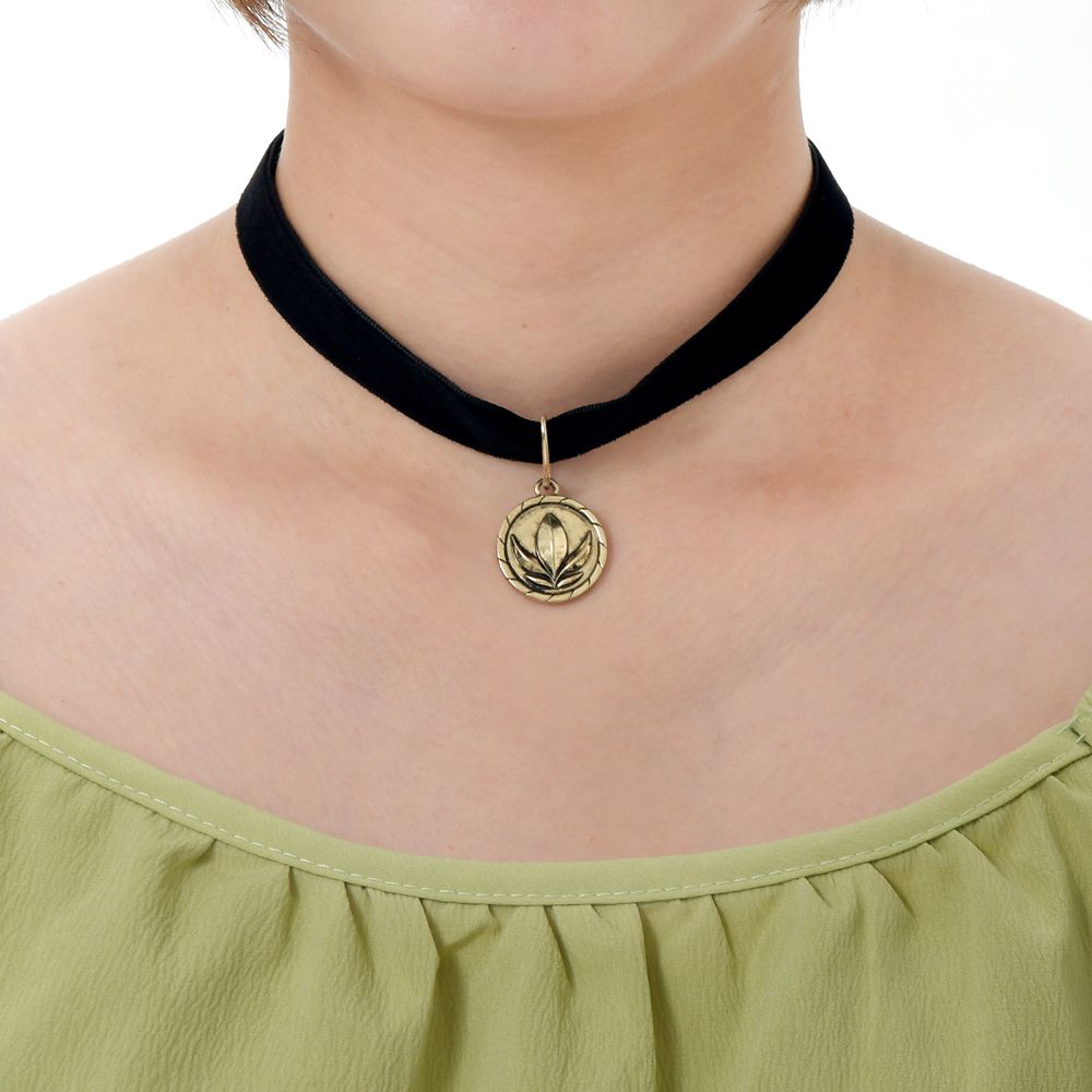 アレンデール王国の紋章を浮き彫りにしたチャームは、アンティーク調の風合いがポイント。