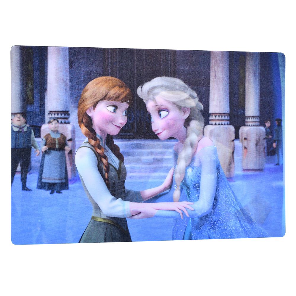 角度によって見え方が変わるレンチキュラー仕様のポストカード。アナとエルサのデザインが登場です。