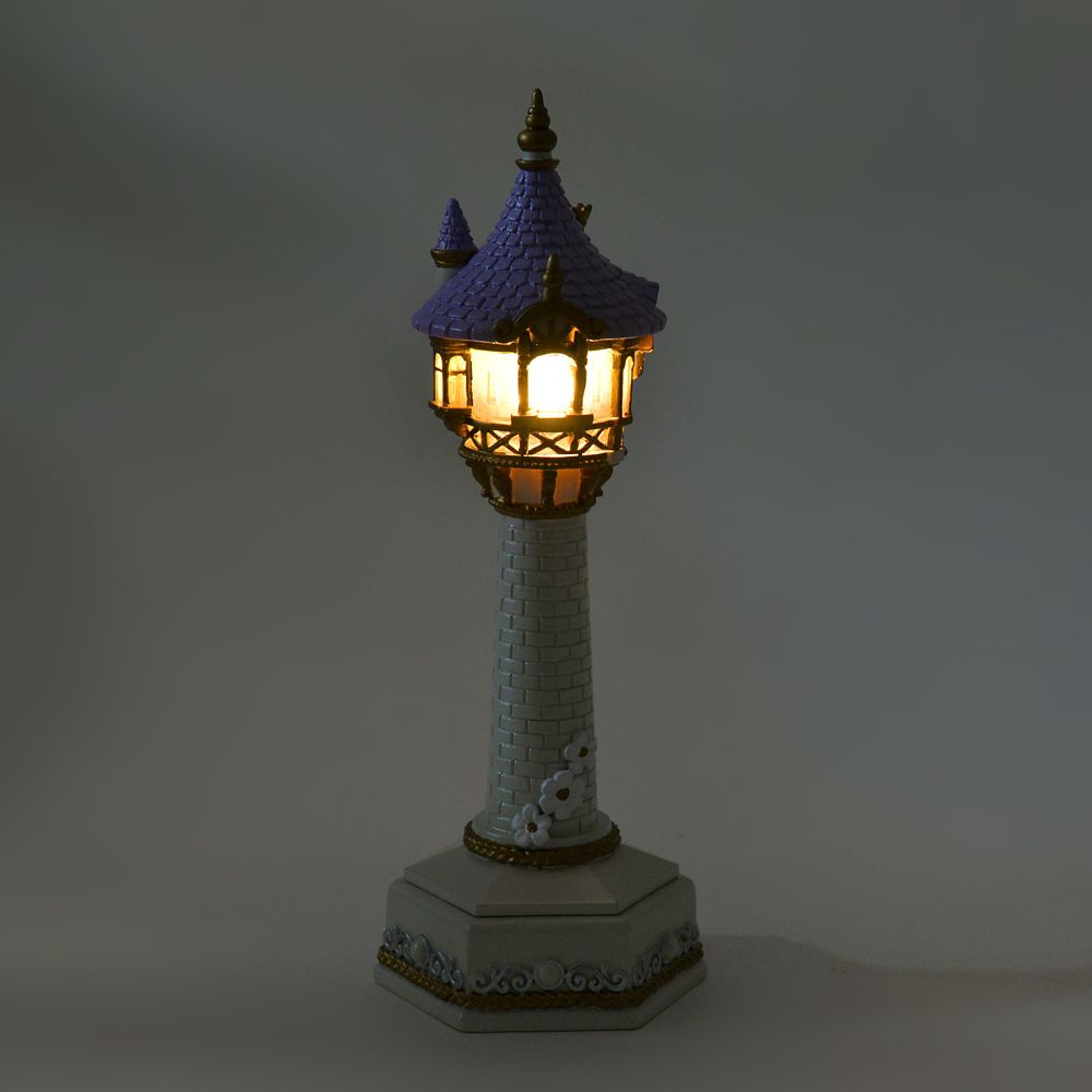 ラプンツェルが暮らす高い塔をモチーフにしたインテリアアイテム。底面のスイッチを入れると明かりが灯り、あたたかな空間を演出します。