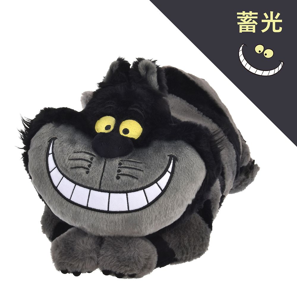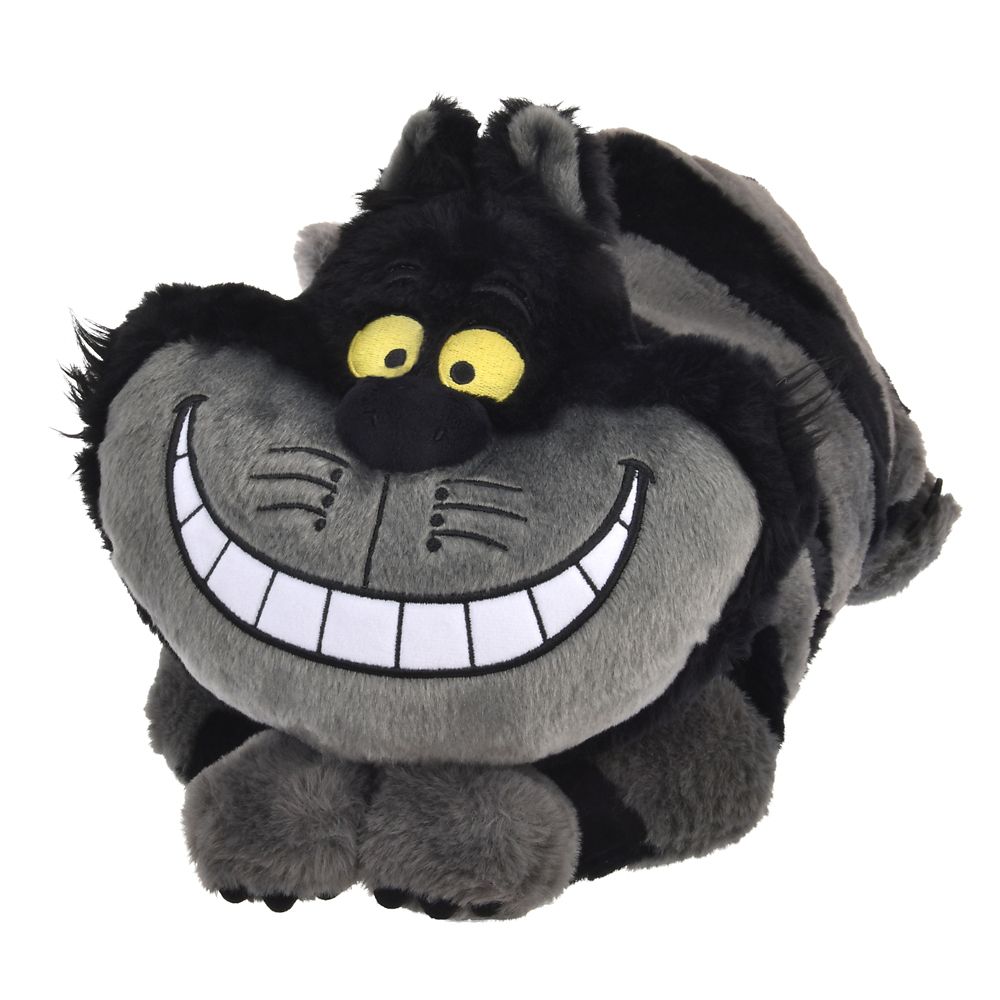 闇に姿を消す様子を表現したモノトーンのチェシャ猫がモチーフです。全身ふわふわの優しい手ざわりで再現されたカバーは癒し度抜群。