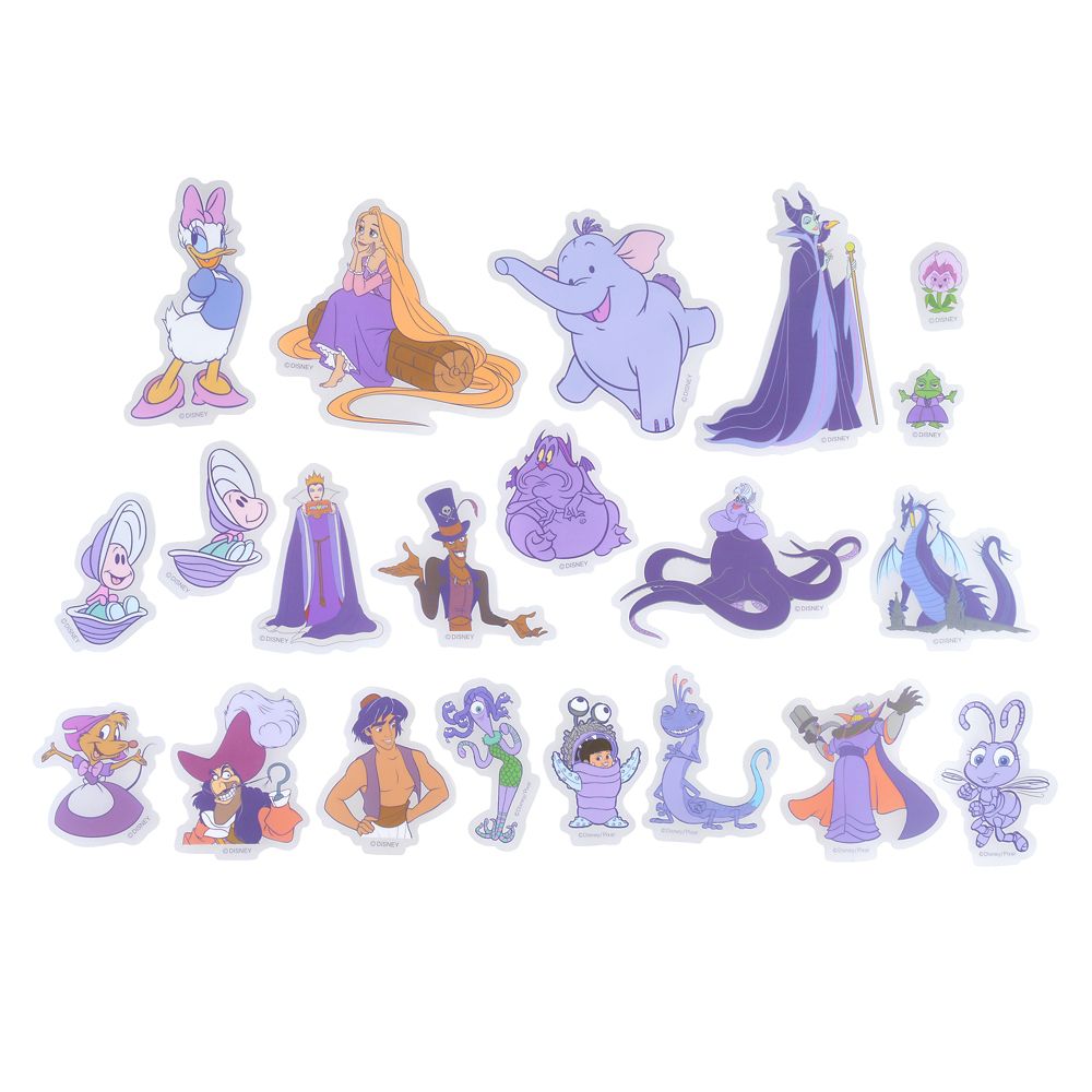 紫色にちなんだディズニーキャラクターの貼ってはがせるクリアステッカーが登場です。