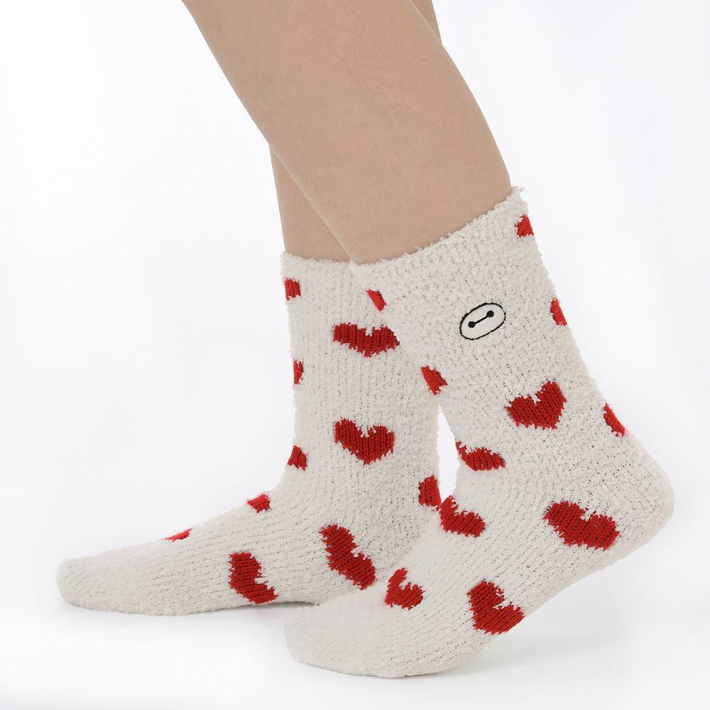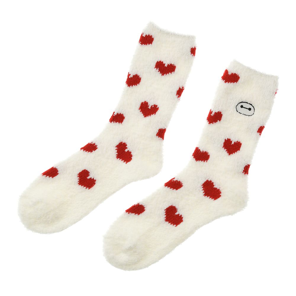 ベイマックスフェイスの刺しゅうが入った、もこもこ素材の ルームソックス。
