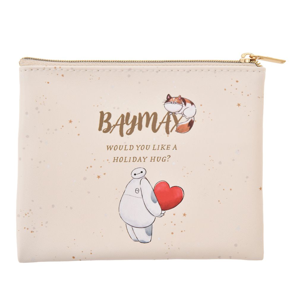 ベイマックスとモチの華やかなデザイン。ミニバッグにも収まりやすい、小さめサイズのフラットポーチが登場。