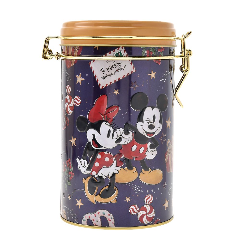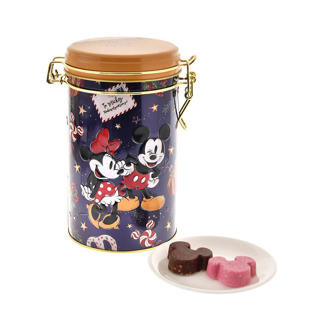 ミッキー&ミニーの華やかなアートをエンボス加工で立体的にあしらったキャニスター缶入り。2種類の味が楽しめる、クランチチョコレート。
