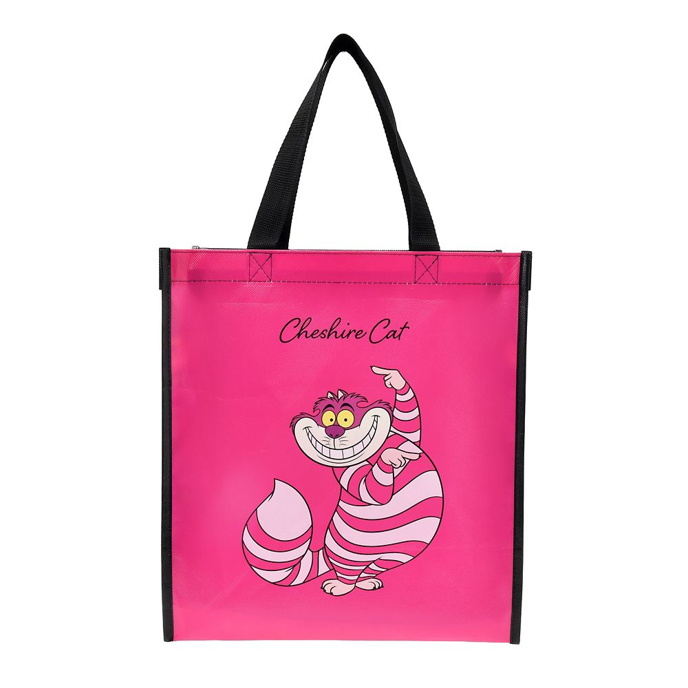 『ふしぎの国のアリス』に登場するいたずら好きのふしぎなネコ、チェシャ猫のデザイン。ショッピングバッグ(ショッパー)。