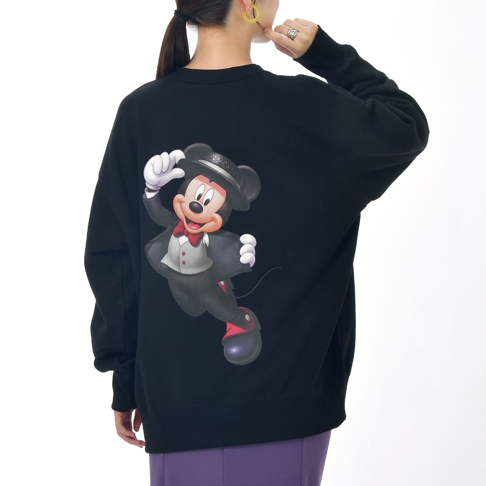 目を引くバックプリントは、コンサート撮影をコンセプトにしたアート。ハットを被り、ブラックのジャケットスーツで軽やかに踊る魅力的なミッキーです♪