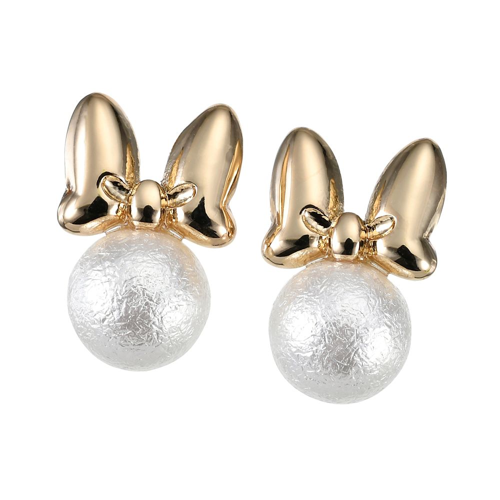 ミニーリボンとコットンパール風パーツのイヤリング。