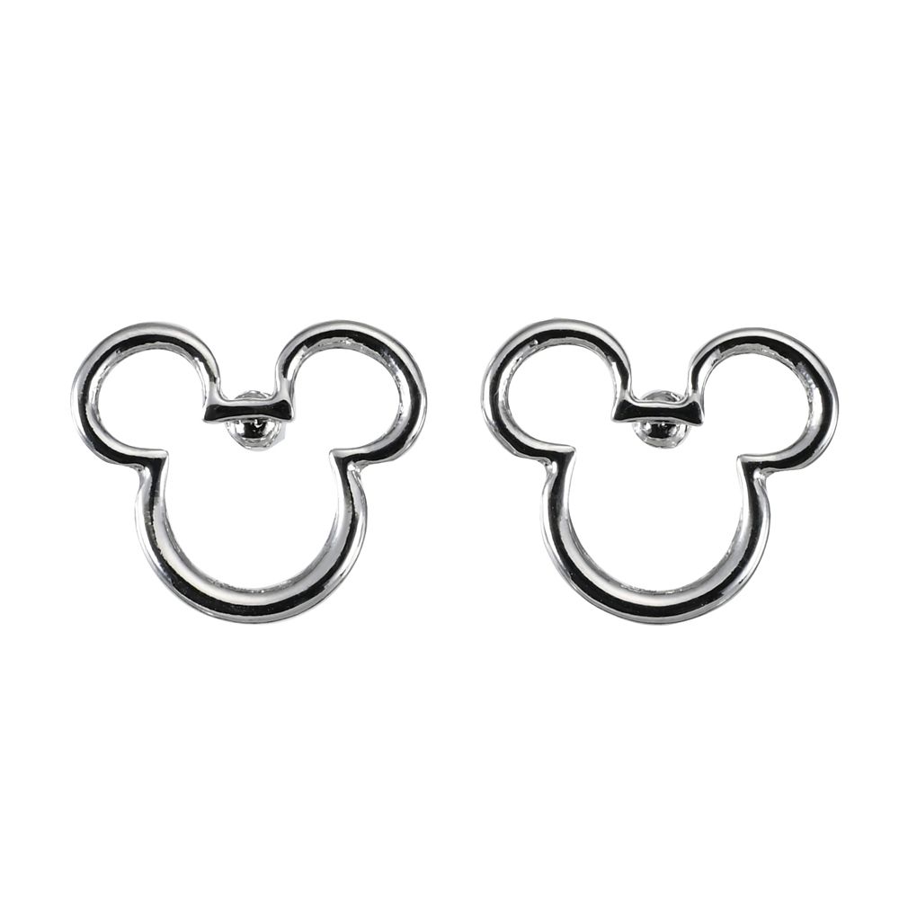 すっきりとしたラインで表現されたミッキーアイコンのピアス。小さめながらもシルバーカラーの輝きで存在感◎。お顔周りを彩ります。