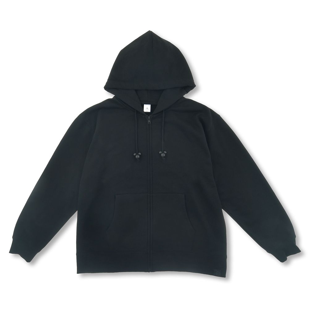 フロントはフードの紐にご注目。ころんとしたフォルムのミッキーアイコンがアクセントです。