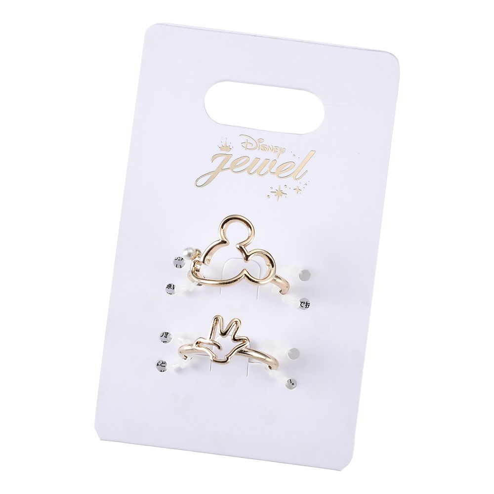 ラインで表現したミッキーフェイスとハンドモチーフのリング2本セット。ミッキーフェイスの鼻にあしらった小さな1粒パールがアクセントです。