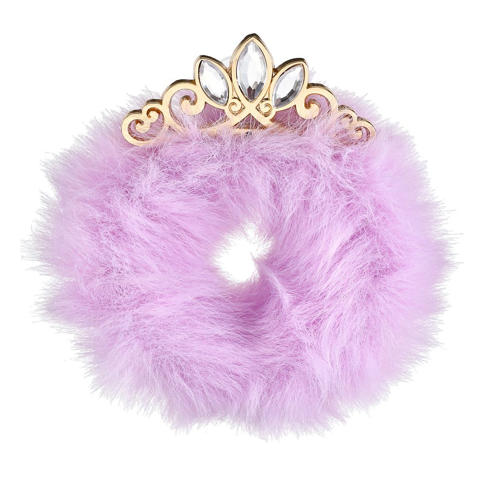 ふんわりやわらかなフェイクファー素材のシュシュに、きらめくティアラモチーフを飾ったデザイン。大粒ストーンが華やかです。