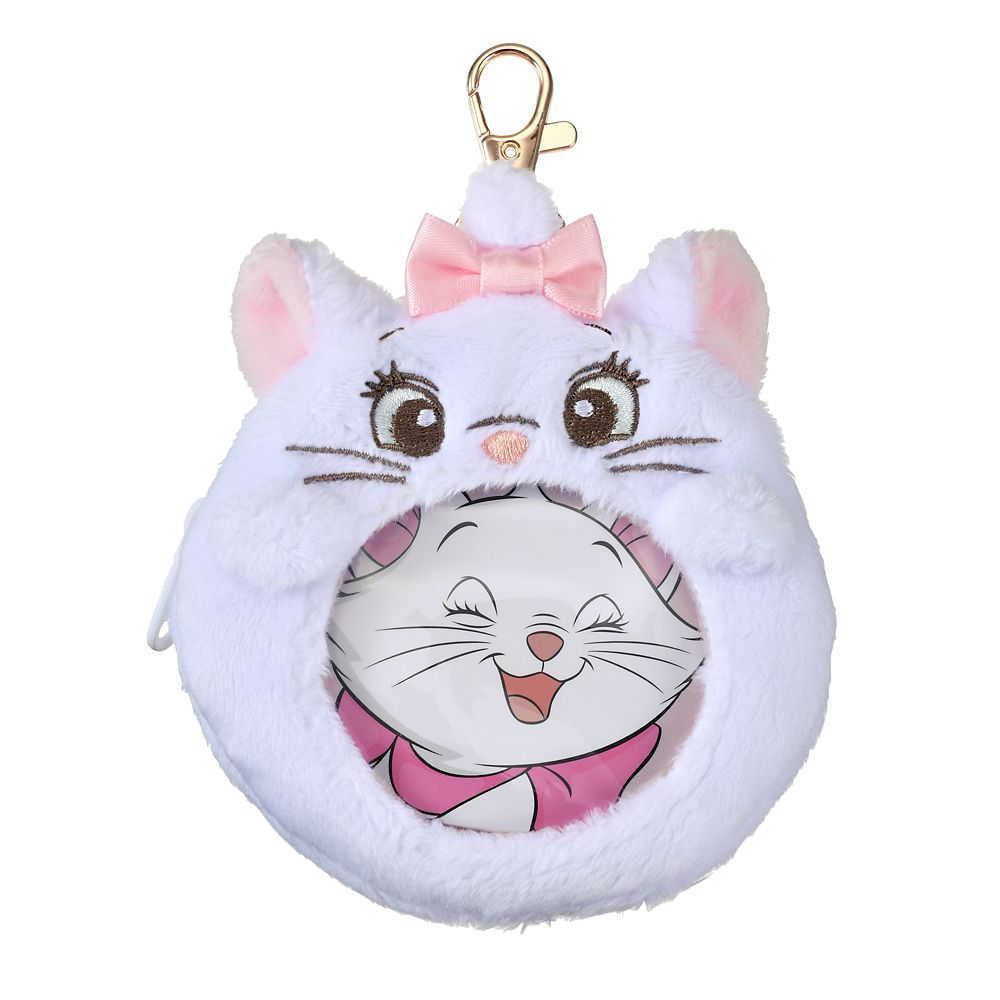 ぬいぐるみのような生地で作られた丸形ポーチ。マリーがモチーフのとっても可愛いデザインです。