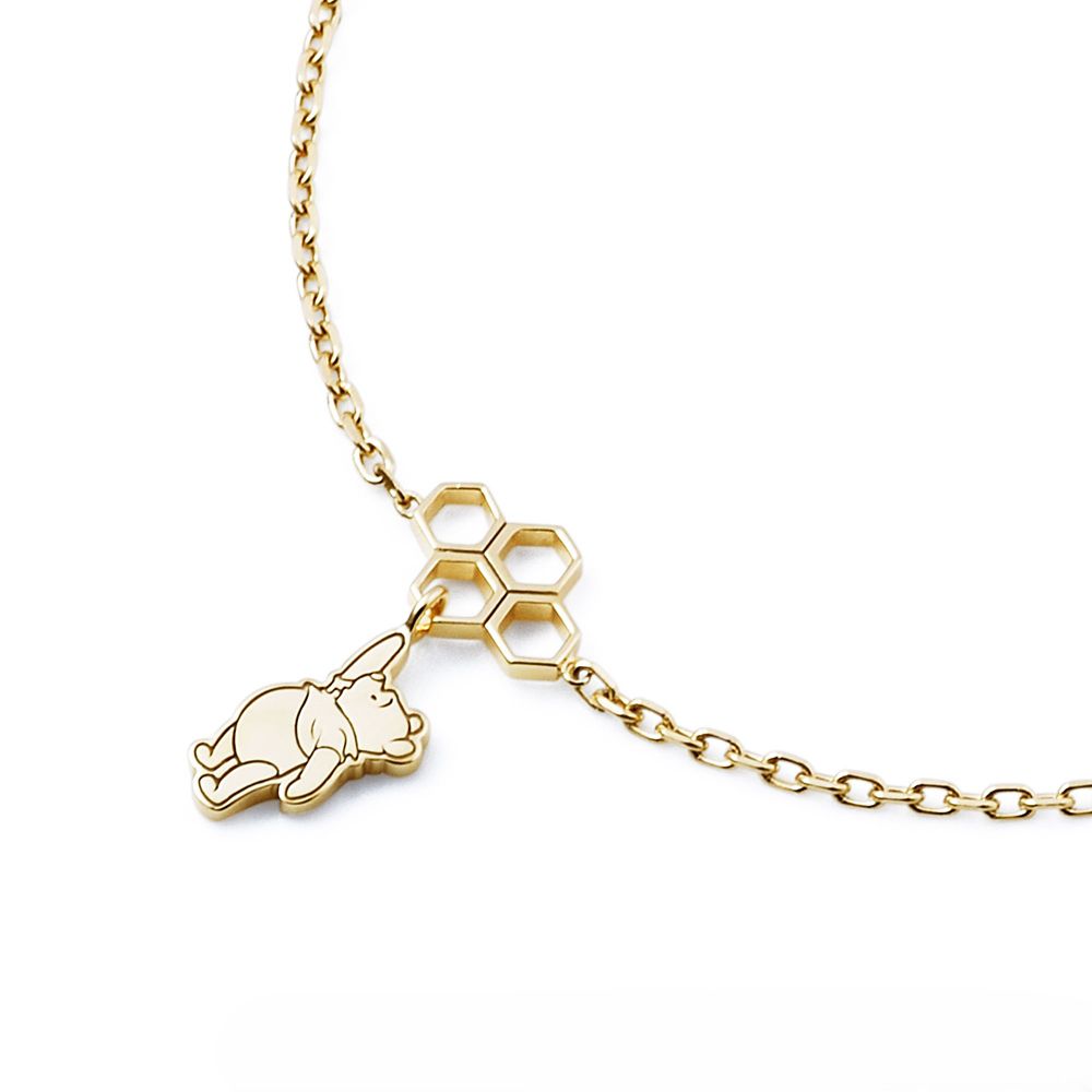 幸運の象徴である蜂の巣モチーフと”プーさん”を組み合わせたブレスレット。