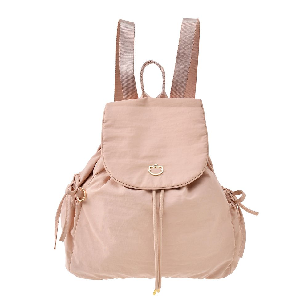 光沢感控えめのやわらかな生地を使用したバックパック。フラップに留めたキャラクターパーツが華やかさをプラスします。