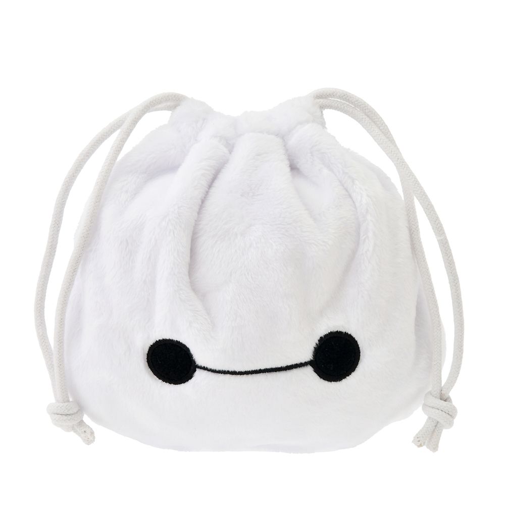 ふんわり優しい手触りの巾着は、ベイマックスの真っ白フェイスが可愛いぬいぐるみ風デザイン。反対面はいろいろなスタイルのベイマックスがプリントされた総柄です。