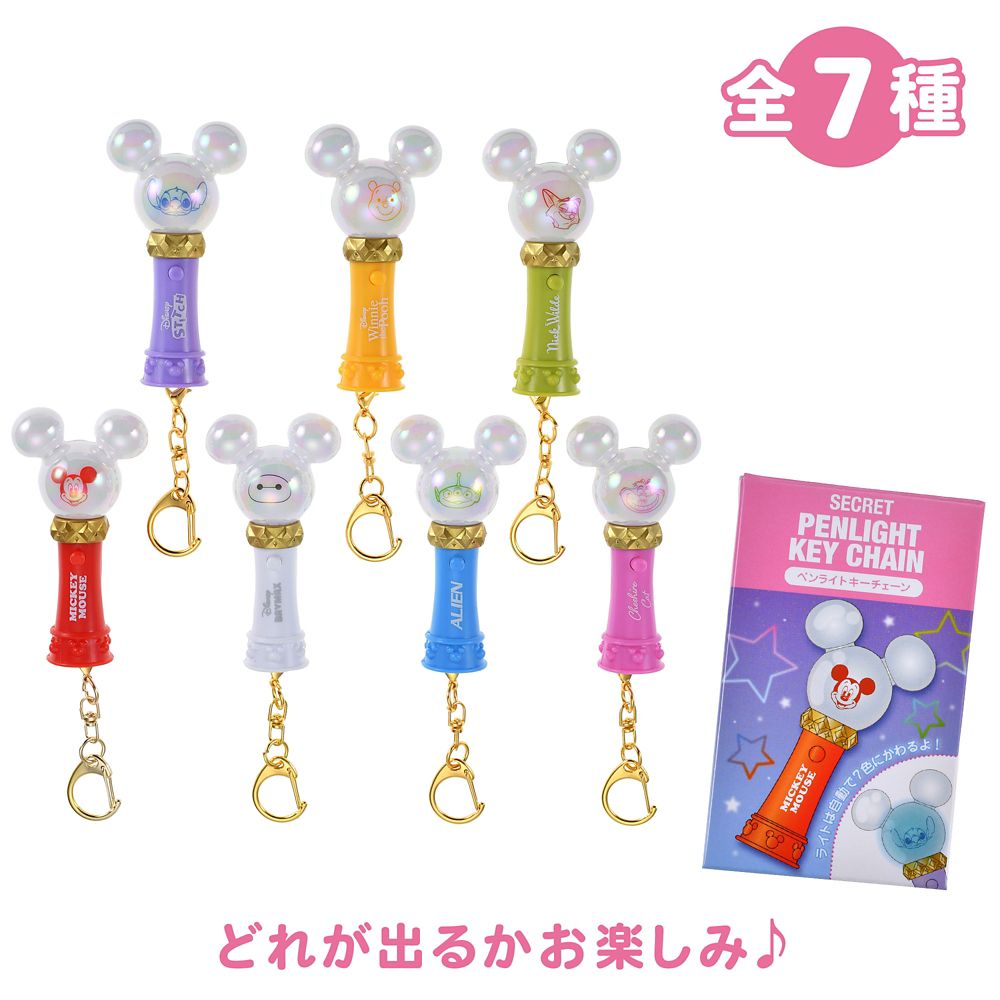 ディズニーキャラクター シークレットキーホルダー 7色変化 ペンライト ライトアップ