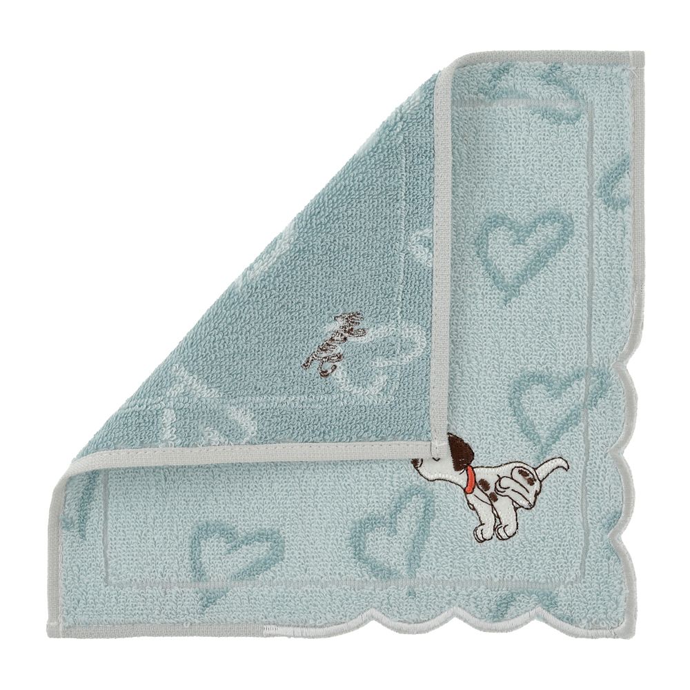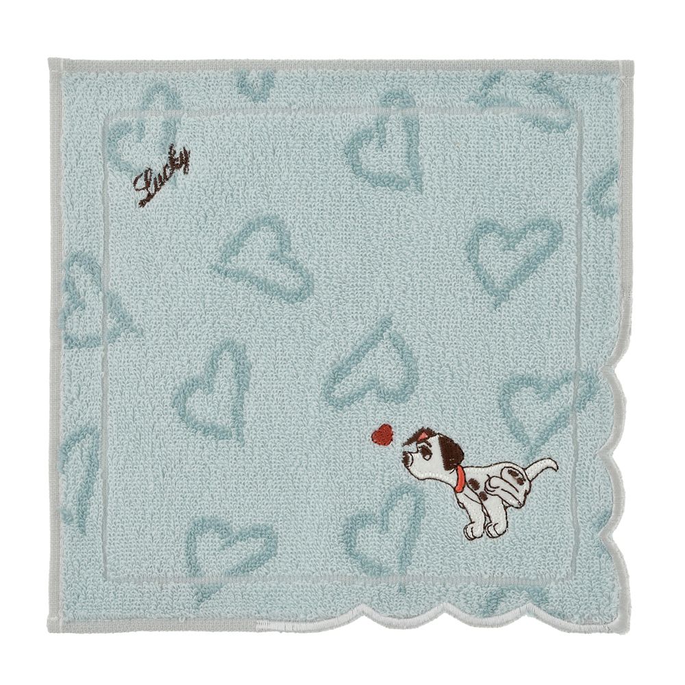 子犬のラッキーをデザインした、ハート柄ミニタオル。