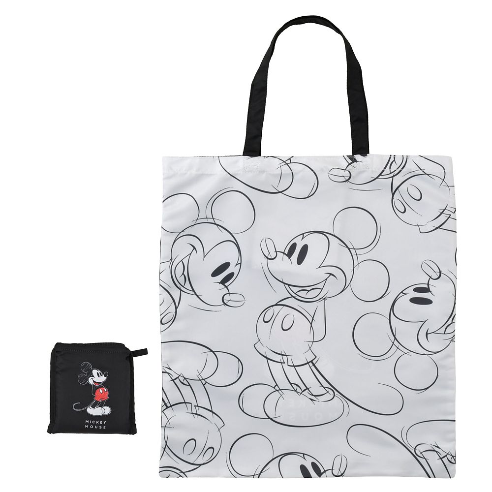 白・黒・赤の3色で表現したミッキーデザインの折りたたみエコバッグが登場です。