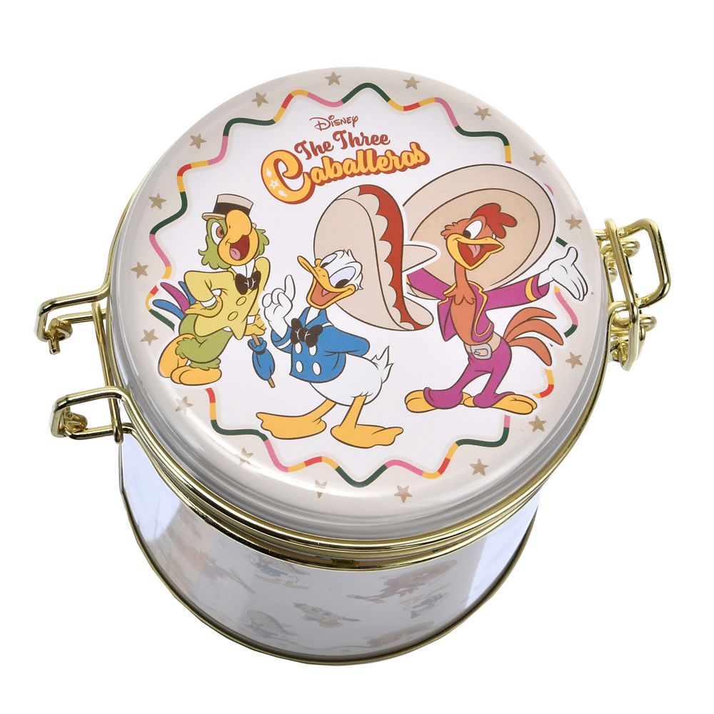 ドナルド、ホセ・キャリオカ、パンチートをデザインしたキャニスター缶入りクッキー。