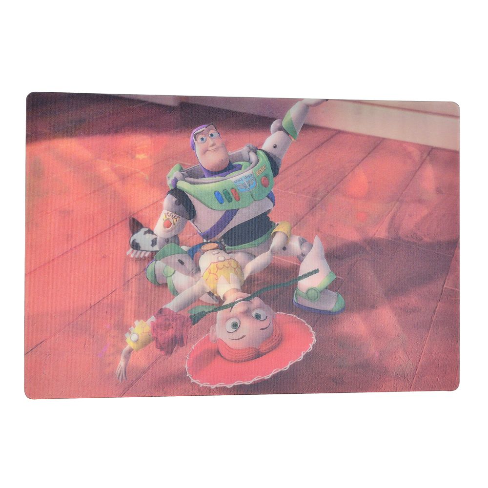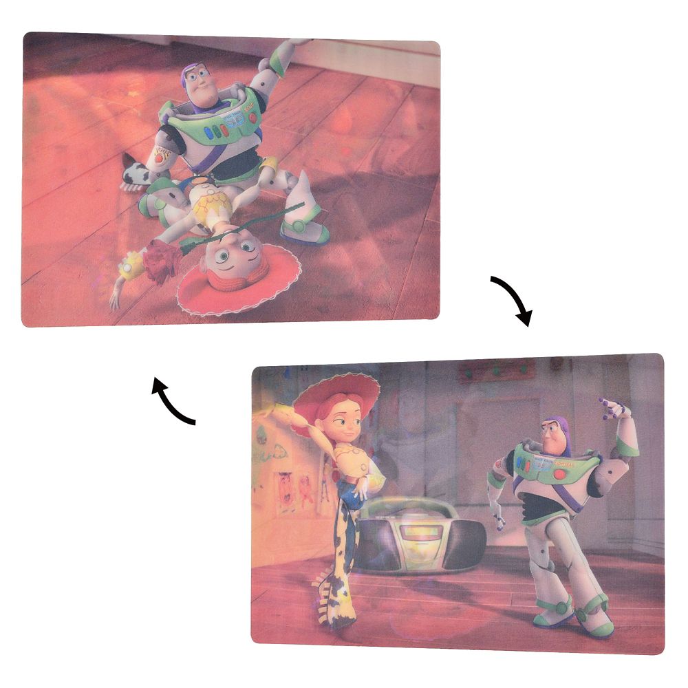 角度によって見え方が変わるレンチキュラー仕様のポストカード。『トイ・ストーリー 3』からバズ・ライトイヤーとジェシーのデザインが登場です。