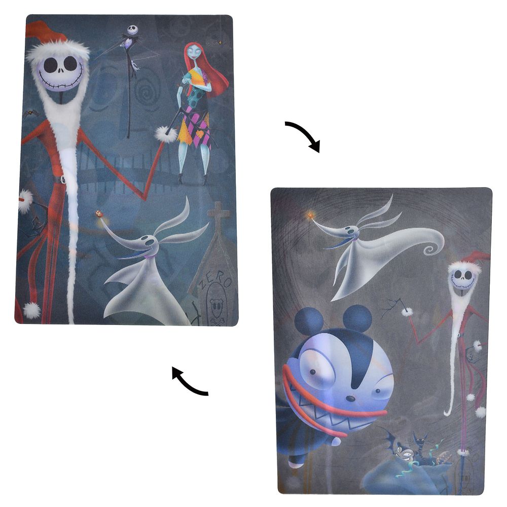 ポストカードを上下に傾けると絵柄が変化。サンディ・クローズスタイルのジャック・スケリントンをはじめ、ゼロやサリーなど個性豊かなキャラクターがデザインされています。