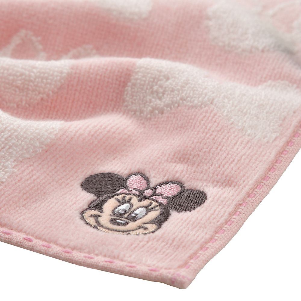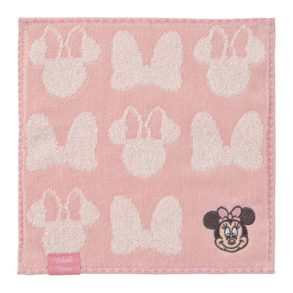 ミニーのアップリケ刺しゅう入りミニタオル。