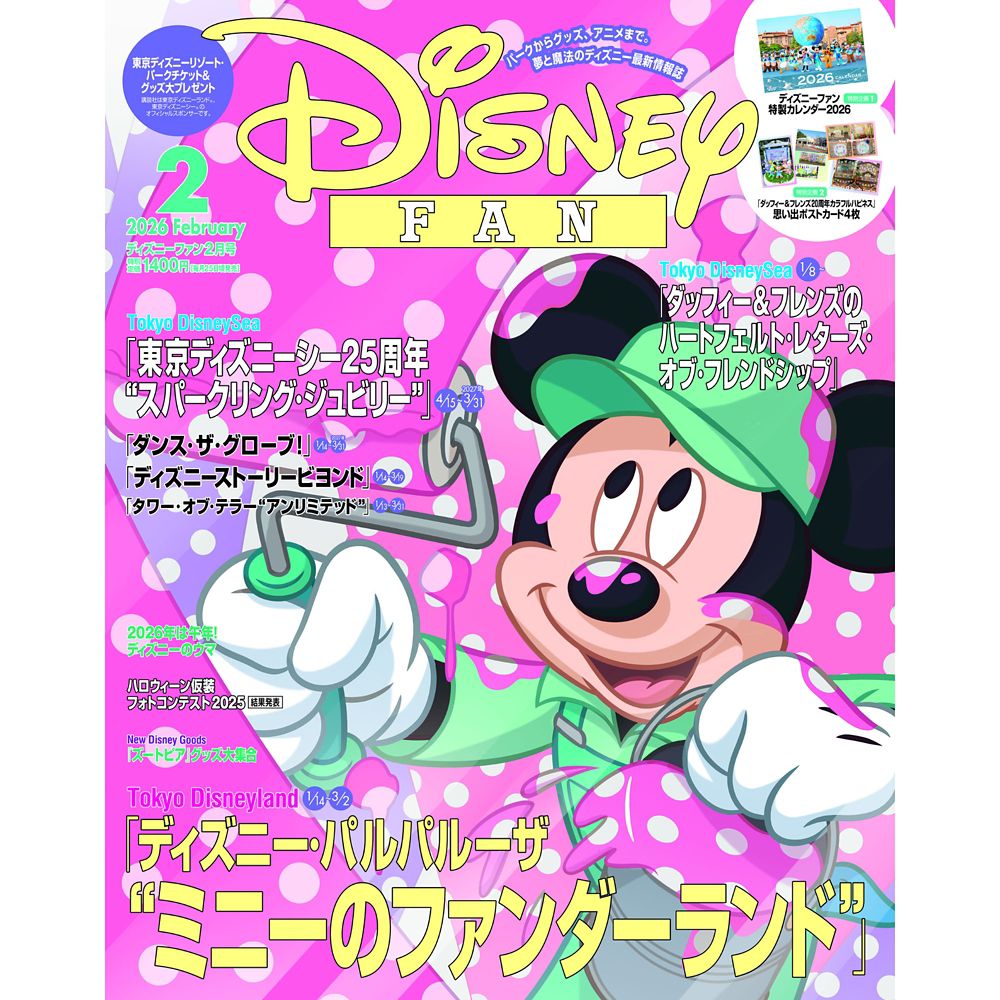 *東京ディズニーリゾートの年間スケジュールをはじめ、1月14日(水)から始まる東京ディズニーランド「ディズニー・パルパルーザ」第5弾「ミニーのファンダーランド」の見どころや東京ディズニーシー25周年のお楽しみなどをご紹介。