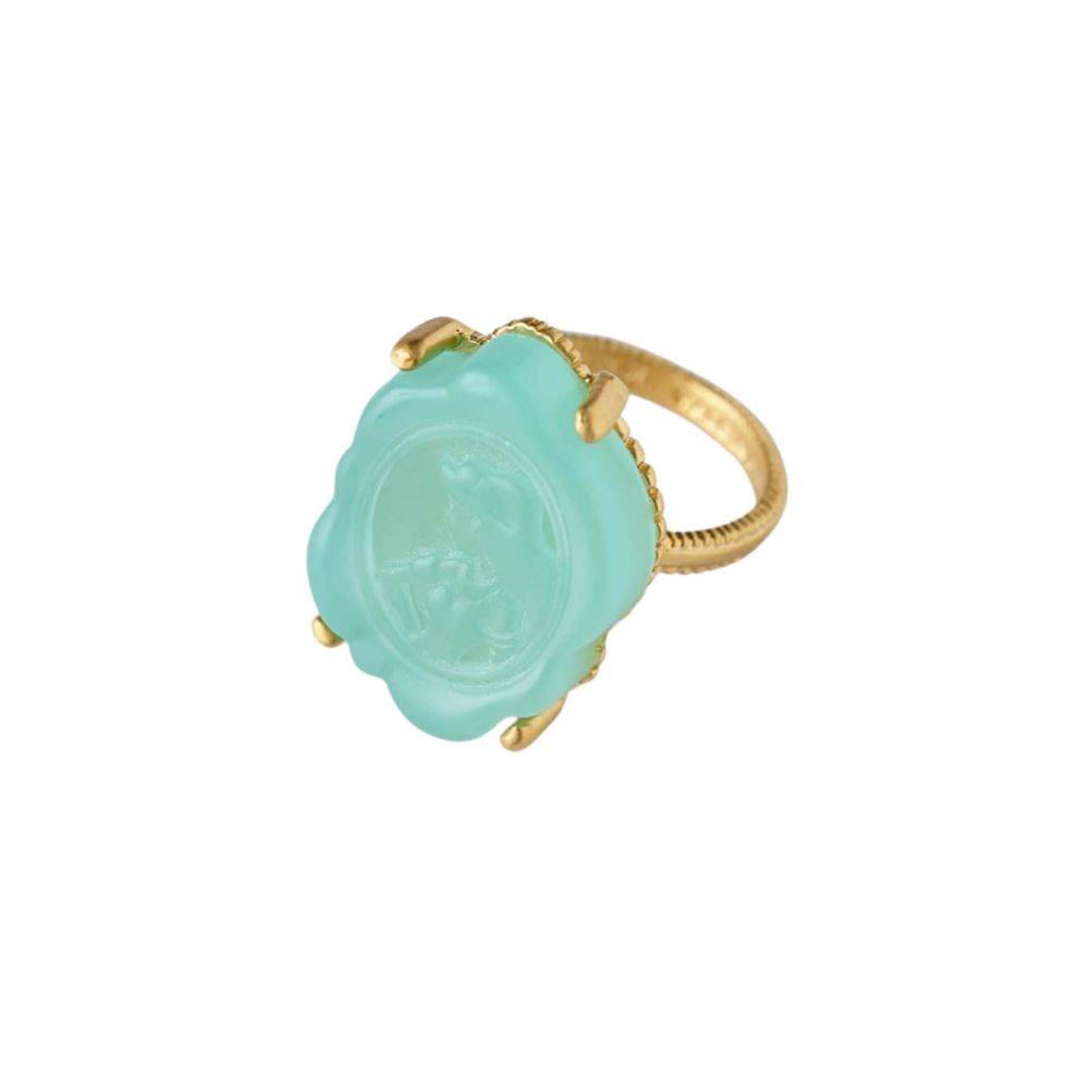 ジャスミンのドレスからインスパイアされた、ターコイズブルーカラーのエレガントなカメオキャンディ。