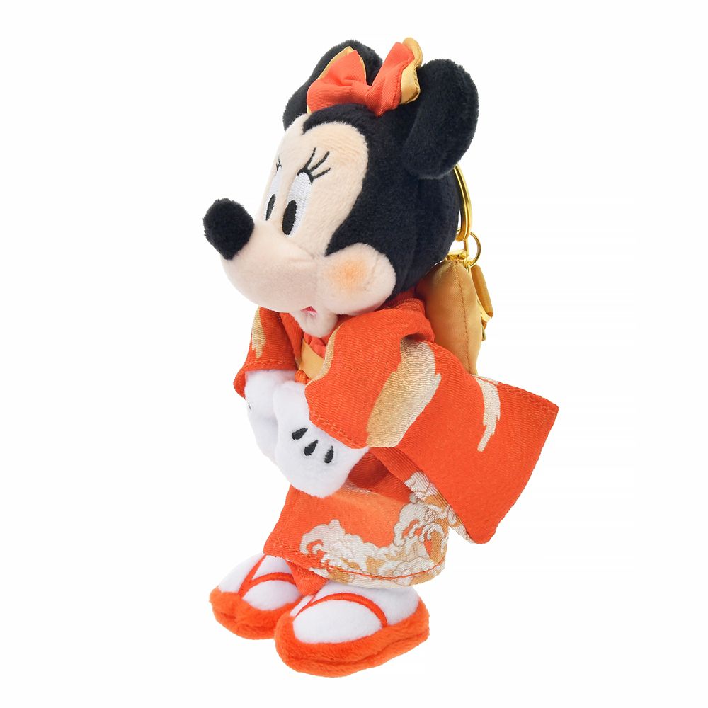 和を感じるデザイン。着物姿が華やかなミニーのぬいぐるみキーホルダーが登場です。