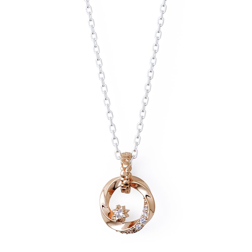 なめらかなツイストが美しい、サークルモチーフのペアネックレス。