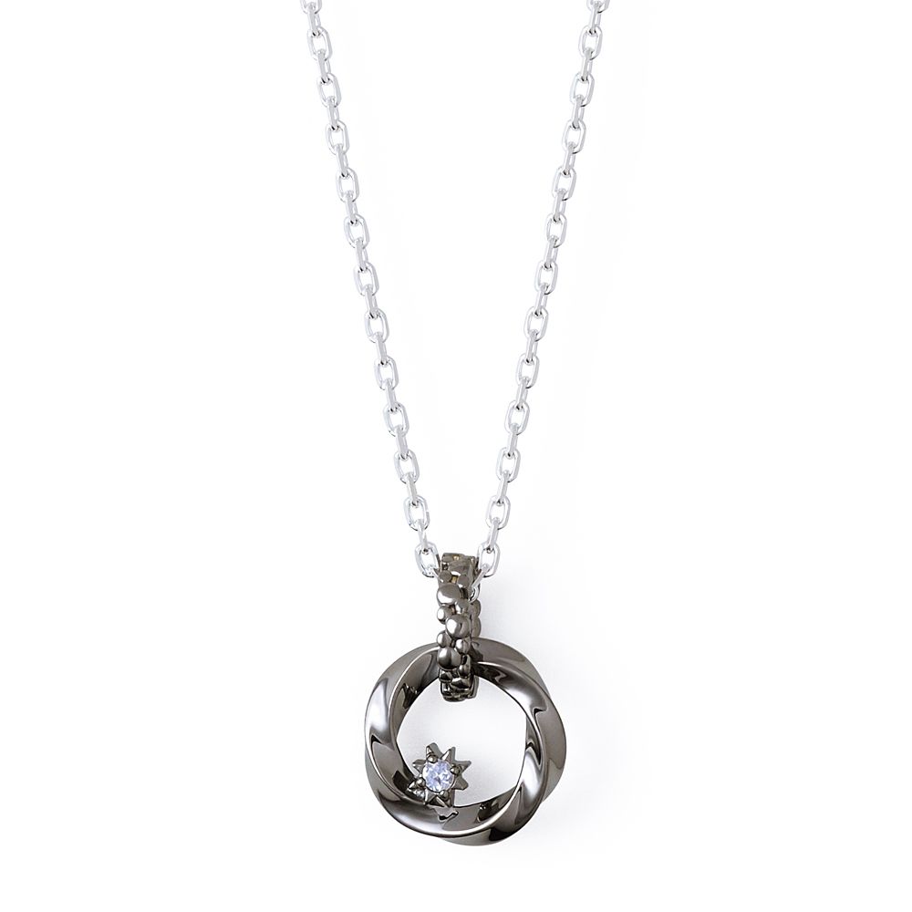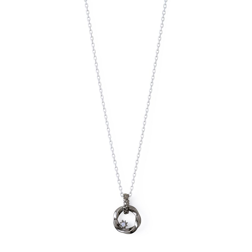 なめらかなツイストが美しい、サークルモチーフのペアネックレス。