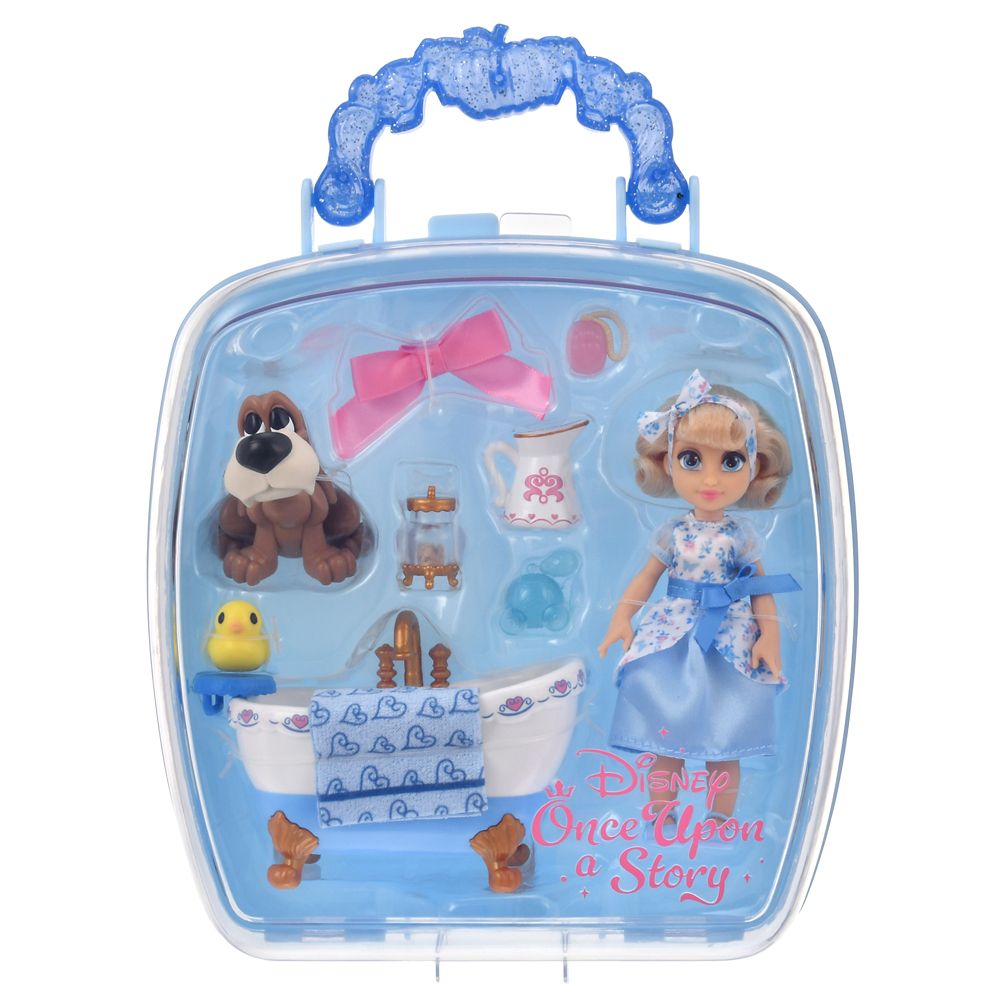 愛らしいシンデレラのドールや犬のブルーノのフィギュアの他、おしゃれなバスタブやリボンなどの小物が揃います。