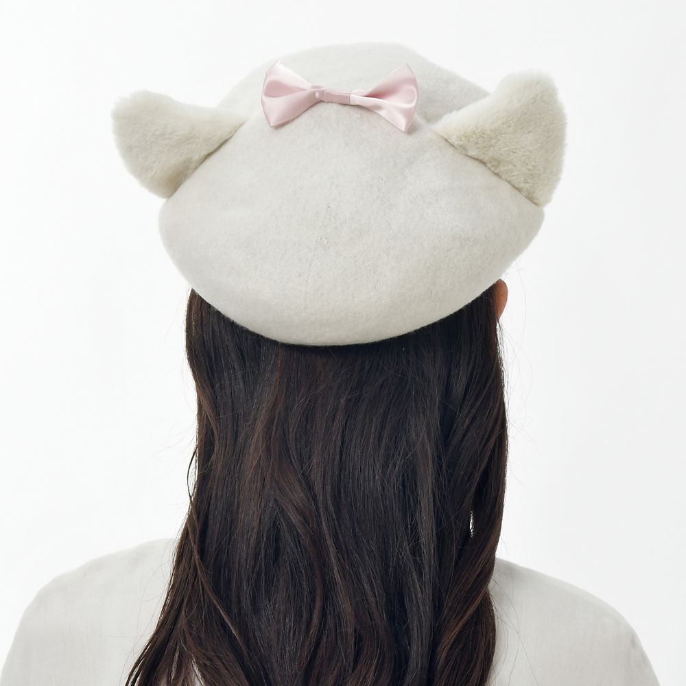 落ち着いた印象の白色のベレー帽。ぴょんと飛び出た耳がまるで子ネコのマリーのようです!