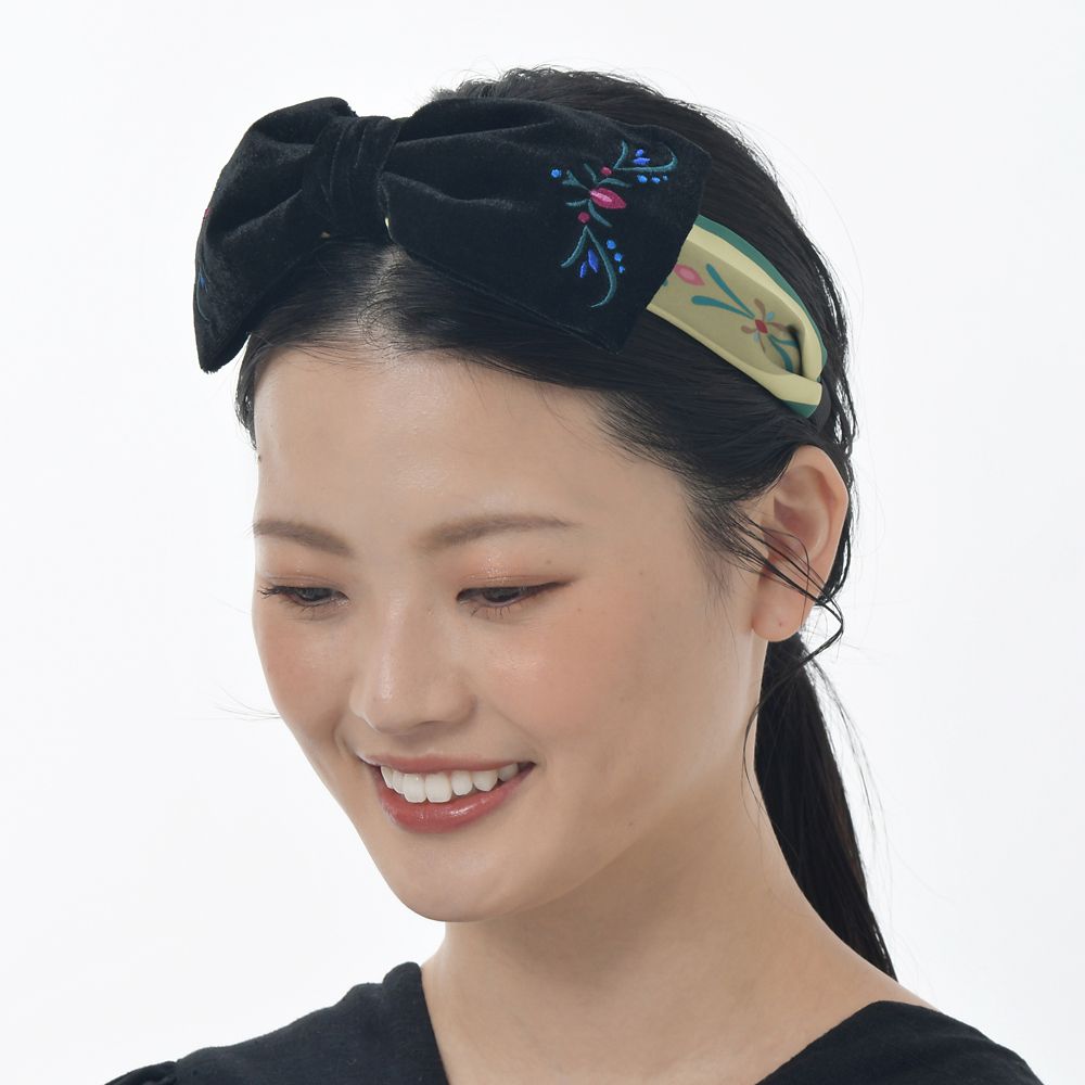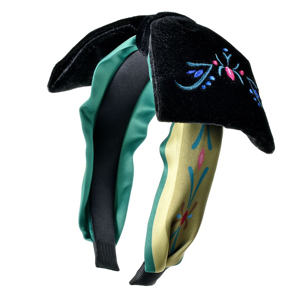 作中でアナが着ていたドレスをモチーフにしたカチューシャ。異なる質感の生地を使用したこだわりのデザインです。