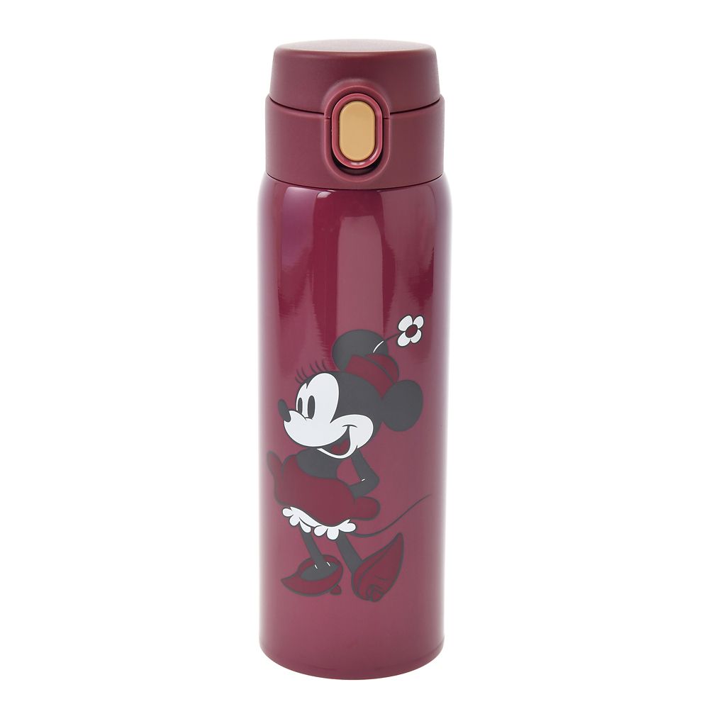 深みのある赤色のボトルにレトロチックなミニーをプリント。落ち着いた色合いがおしゃれです。