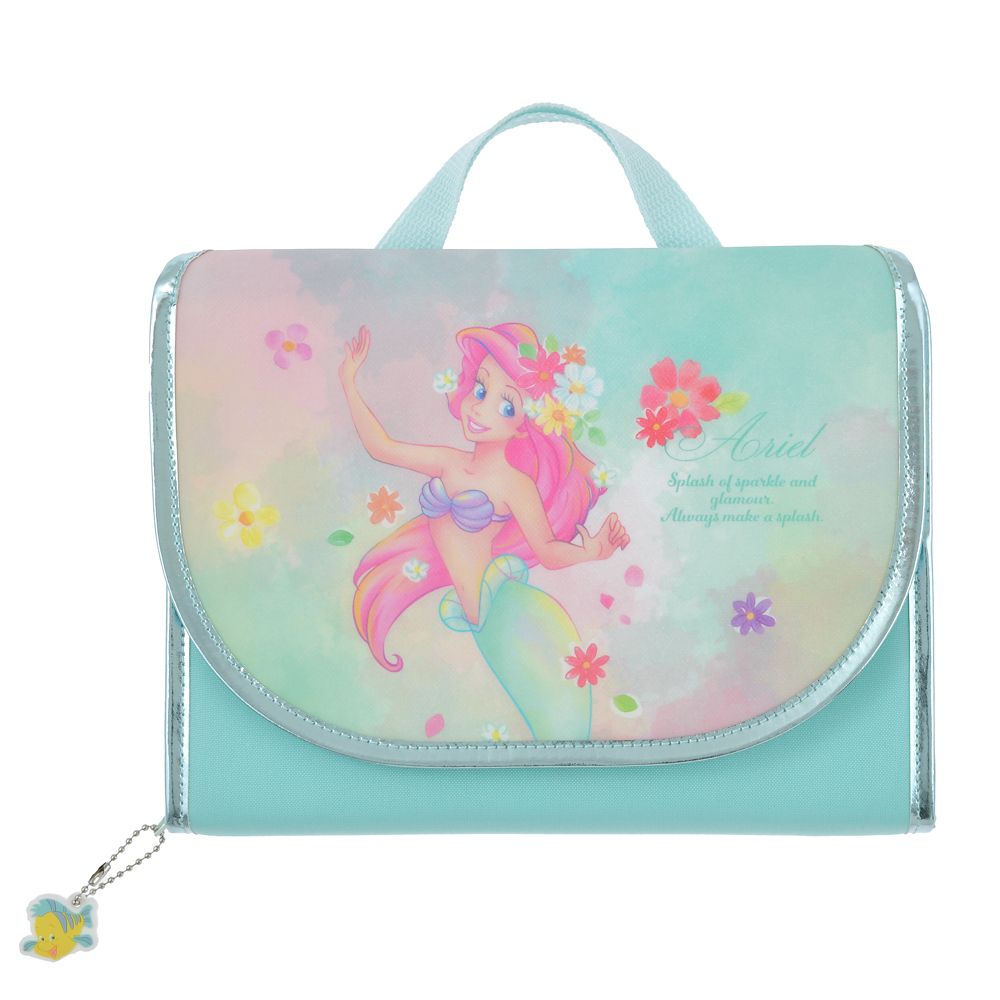 キャラクターとお花が描かれたハンドバッグ風ケース。中には、カラーペン・色えんぴつ・えんぴつ・らくがき帳などが入っています。