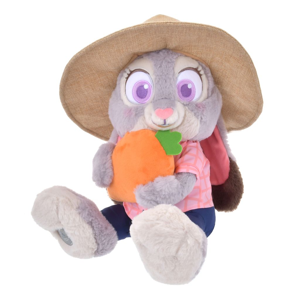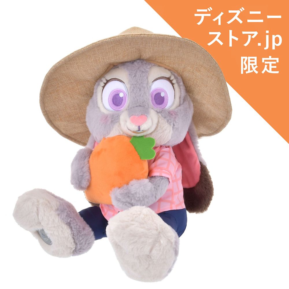 麦わら帽子をかぶったジュディ・ホップスは、美味しそうなニンジンを持っています。大きな野菜を手に嬉しそう!ぱっちり目が可愛いです。
