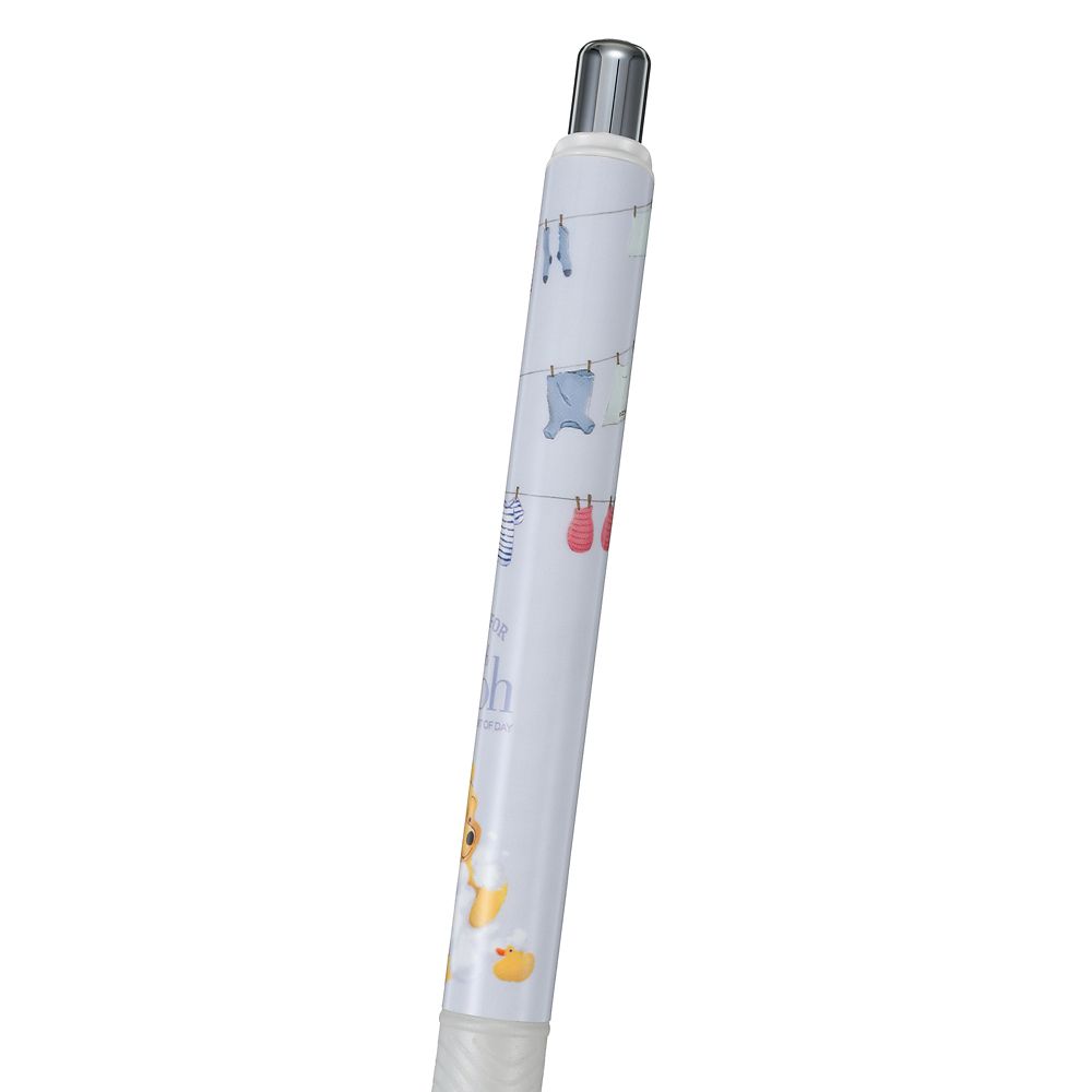 きれいに洗って干された洋服と、もこもこ泡に包まれたプーさんをペン軸にプリント。