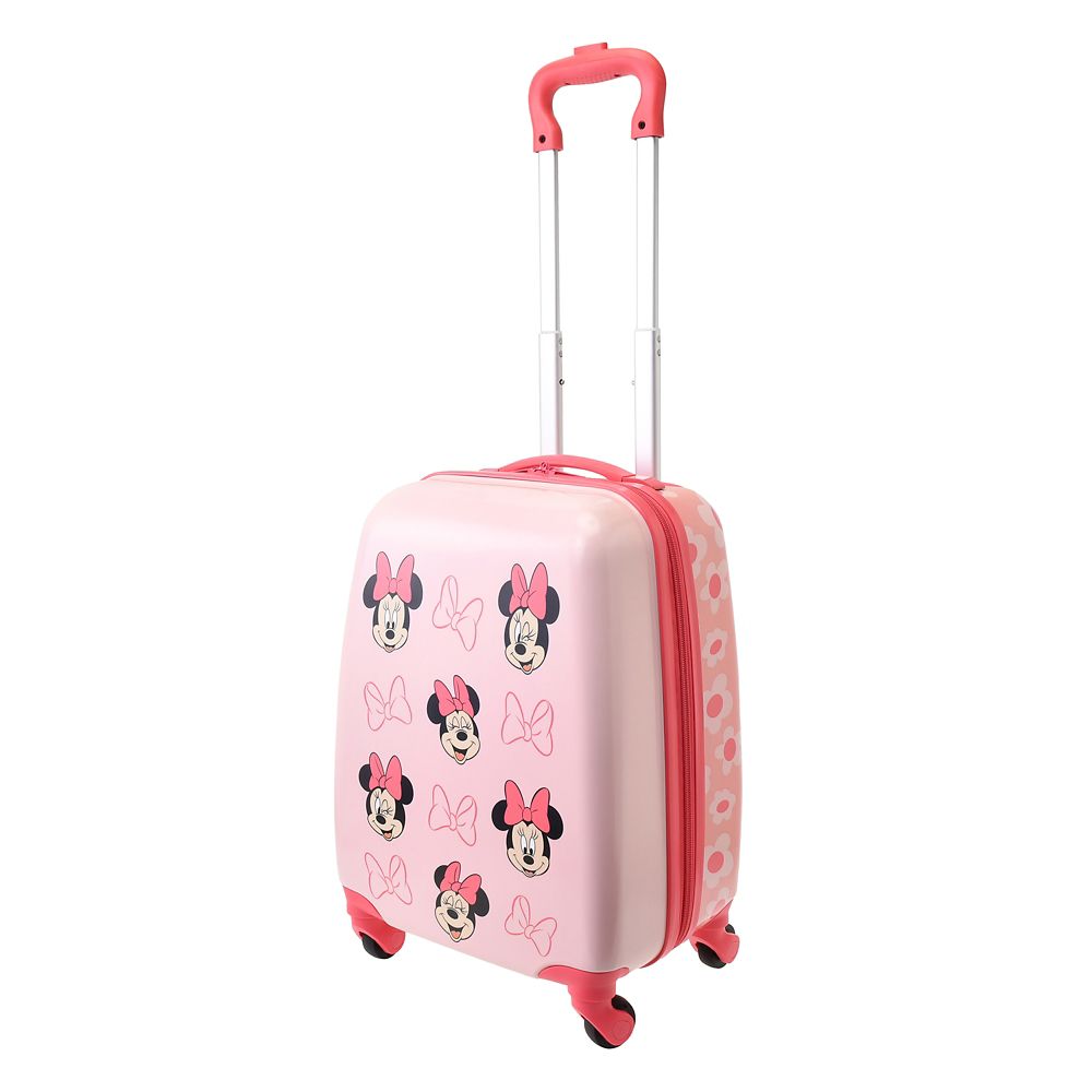 キュートな笑顔のミニーとリボンをデザインした、ピンク色のトロリー。反対面は可愛らしい花柄です♪