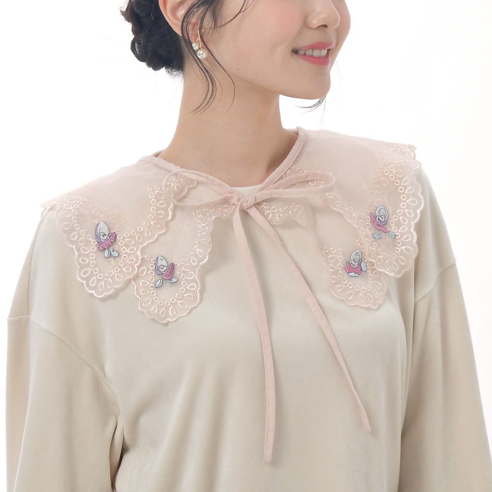 キャラクターらしい優しいピンクの刺しゅうをあしらったオーガンジーレースを2枚重ねたデザインです。
