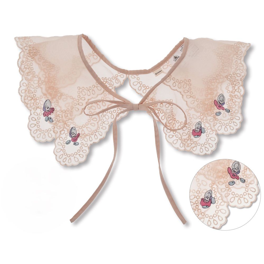4つの襟先それぞれにヤングオイスターを刺しゅう。オイスターたちはみんな異なるポーズをしているのでぜひ注目してみて♪