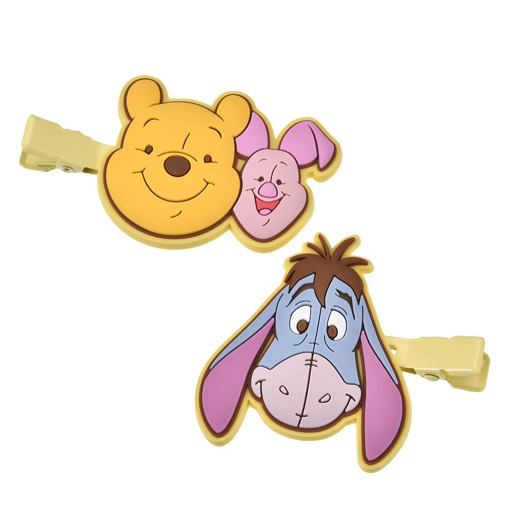 プーさんとピグレット、イーヨーをデザインしたヘアクリップ、2個セット。