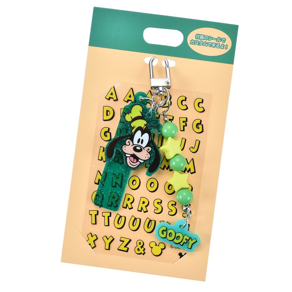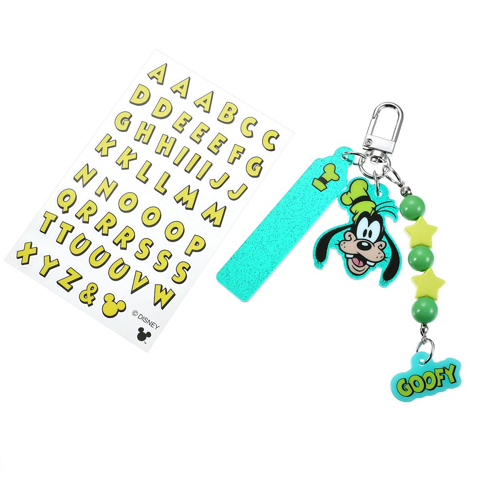 カスタマイズできるシール付き、グーフィーデザインのキーホルダー。
