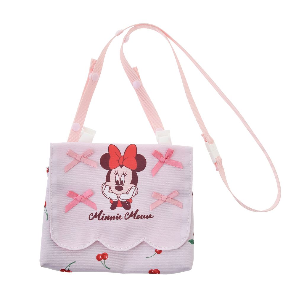 スカラップカットのフラップがキュート。ミニーとチェリー柄のマルチポケットが登場。