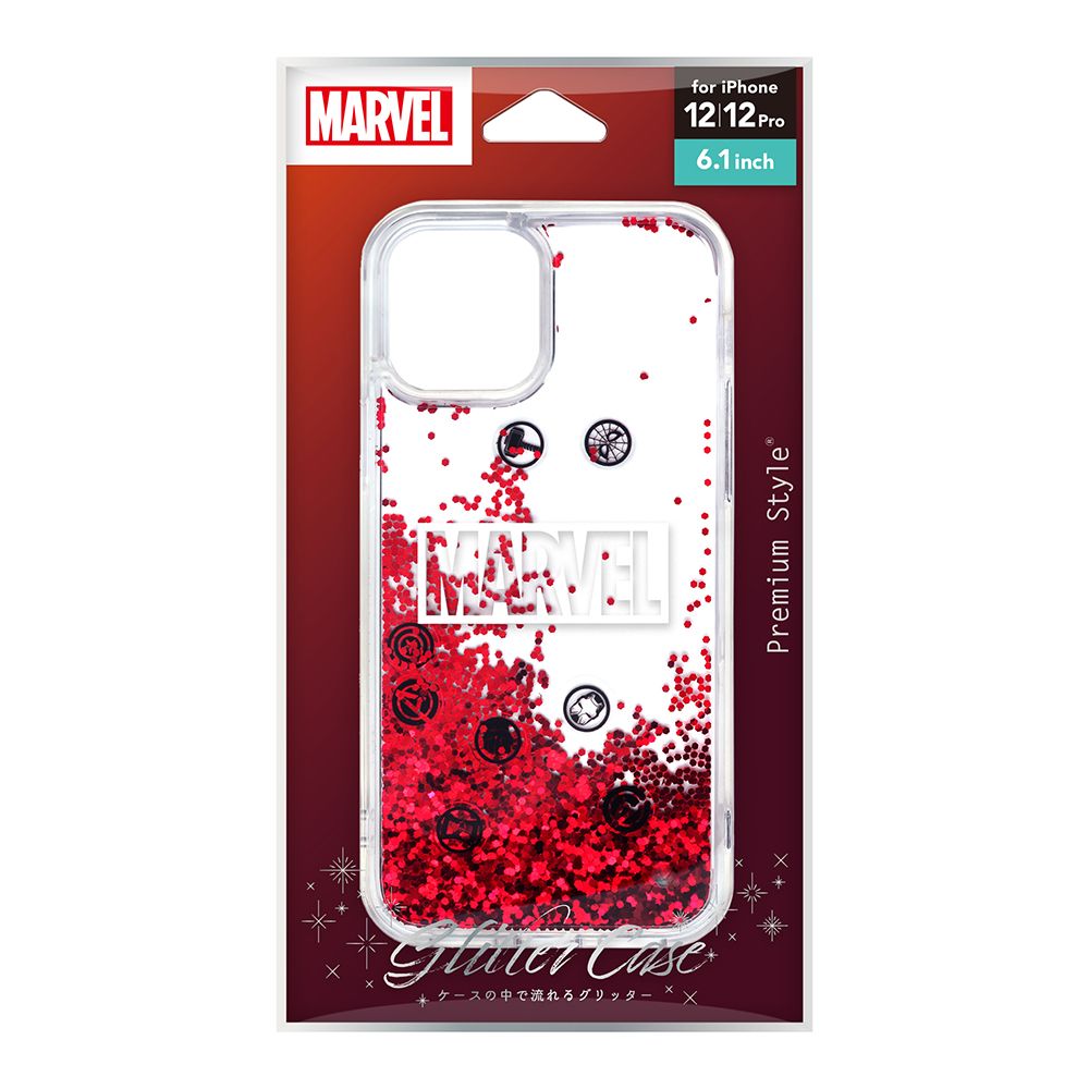 「PG-DLQ20G08MVL」は、「MARVEL」キャラクターデザインのキラキラ輝くグリッター入りのiPhone 12/12 Pro用グリッターケースです。ケースを傾けると中のグリッターとキャラクターパーツがゆらゆらと動き回ります。MIL規格(MIL-STD-810G)の2項目、落下、振動に準拠した試験をクリアした、耐衝撃&耐振動設計。手に馴染みやすいTPCとPC素材で軽度の衝撃やキズを軽減します。ケースと端末の貼りつきによる密着痕を防ぐマイクロドット加工済み。装着した状態での各種ボタン操作可能でワイヤレス充電にも対応しています。お手持ちのストラップをつけて落下を防げるストラップホール付き。