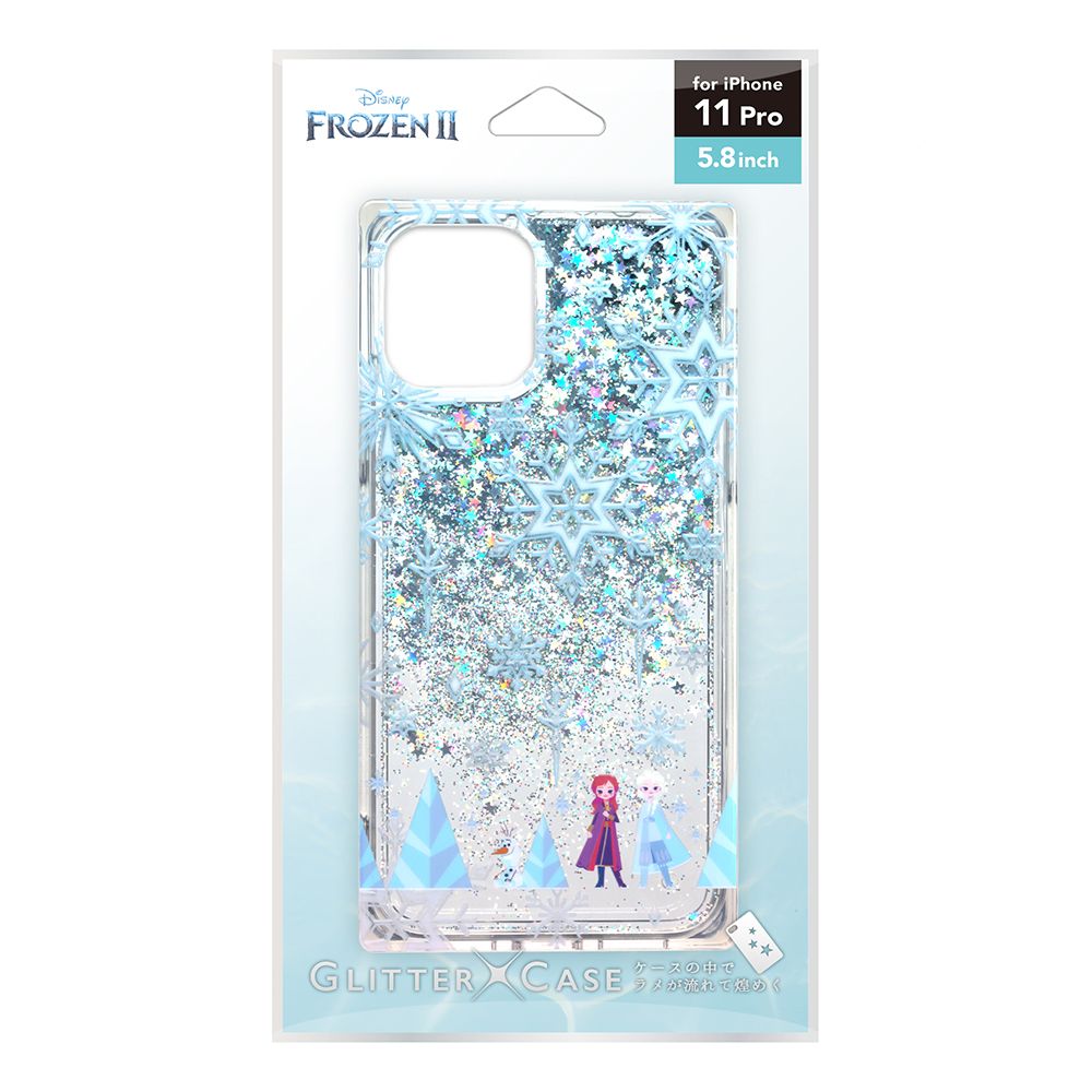 「PG-DLQ19A01FRZ」は、「アナと雪の女王2」デザインのキラキラ輝くグリッター入りのスクエア型iPhone 11 Pro用グリッターケースです。ケースを傾けると中のグリッターがキラキラと光ります。MIL規格(MIL-STD-810G)の2項目、落下、振動に準拠した試験をクリアした、耐衝撃&耐振動設計。手に馴染みやすいTPCとPC素材で軽度の衝撃やキズを軽減します。ケースと端末の貼りつきによる密着痕を防ぐマイクロドット加工済み。装着した状態での各種ボタン操作可能でワイヤレス充電にも対応しています。お手持ちのストラップをつけて落下を防げるストラップホール付き。