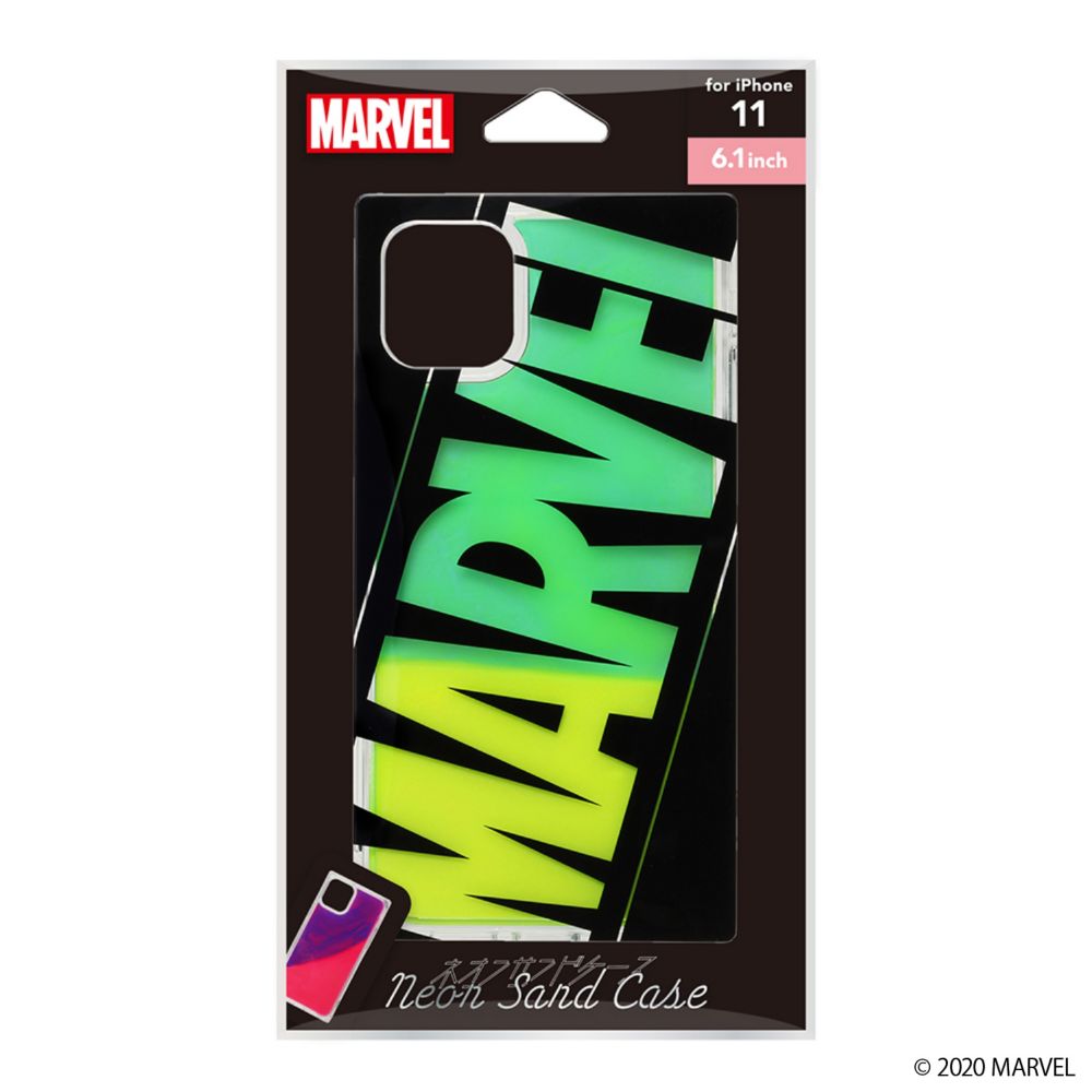 「PG-DLQ19B16MVL」は、「MARVEL」ロゴデザインの暗闇の中でほんのり光る蓄光タイプのiPhone 11用ネオンサンドケースです。ケースを傾けると中のカラフルなネオンサンドが流れます。MIL規格(MIL-STD-810G)の2項目、落下、振動に準拠した試験をクリアした、耐衝撃&耐振動設計。手に馴染みやすいTPCとPC素材で軽度の衝撃やキズを軽減します。ケースと端末の貼りつきによる密着痕を防ぐマイクロドット加工済み。装着した状態での各種ボタン操作可能でワイヤレス充電にも対応しています。お手持ちのストラップをつけて落下を防げるストラップホール付き。