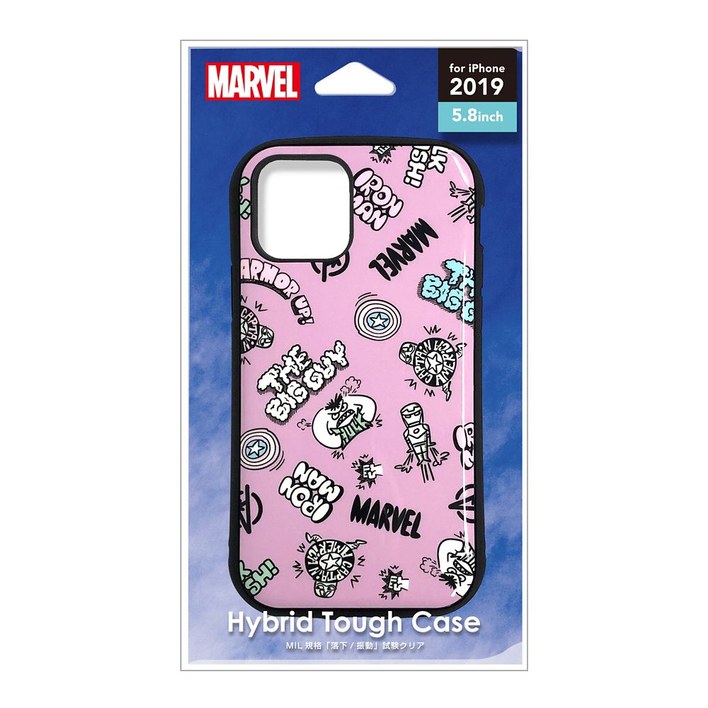 「PG-DPT19A12AVG」は、iPhone 11 Proに対応した「MARVEL」のキャラクターデザインのハイブリッドタフケースです。 MIL規格(MIL-STD-810G)の2項目、落下、振動に準拠した試験をクリアした、耐衝撃&耐振動設計。薄くて耐久性に優れたポリカーボネイトと手によくなじむTPU素材を使用したダブルハニカム構造で、耐衝撃性能の向上と軽量化を実現しました。ラウンド形状で手にフィットするデザインお手持ちのストラップを付けて落下を防止できるストラップホール付き。