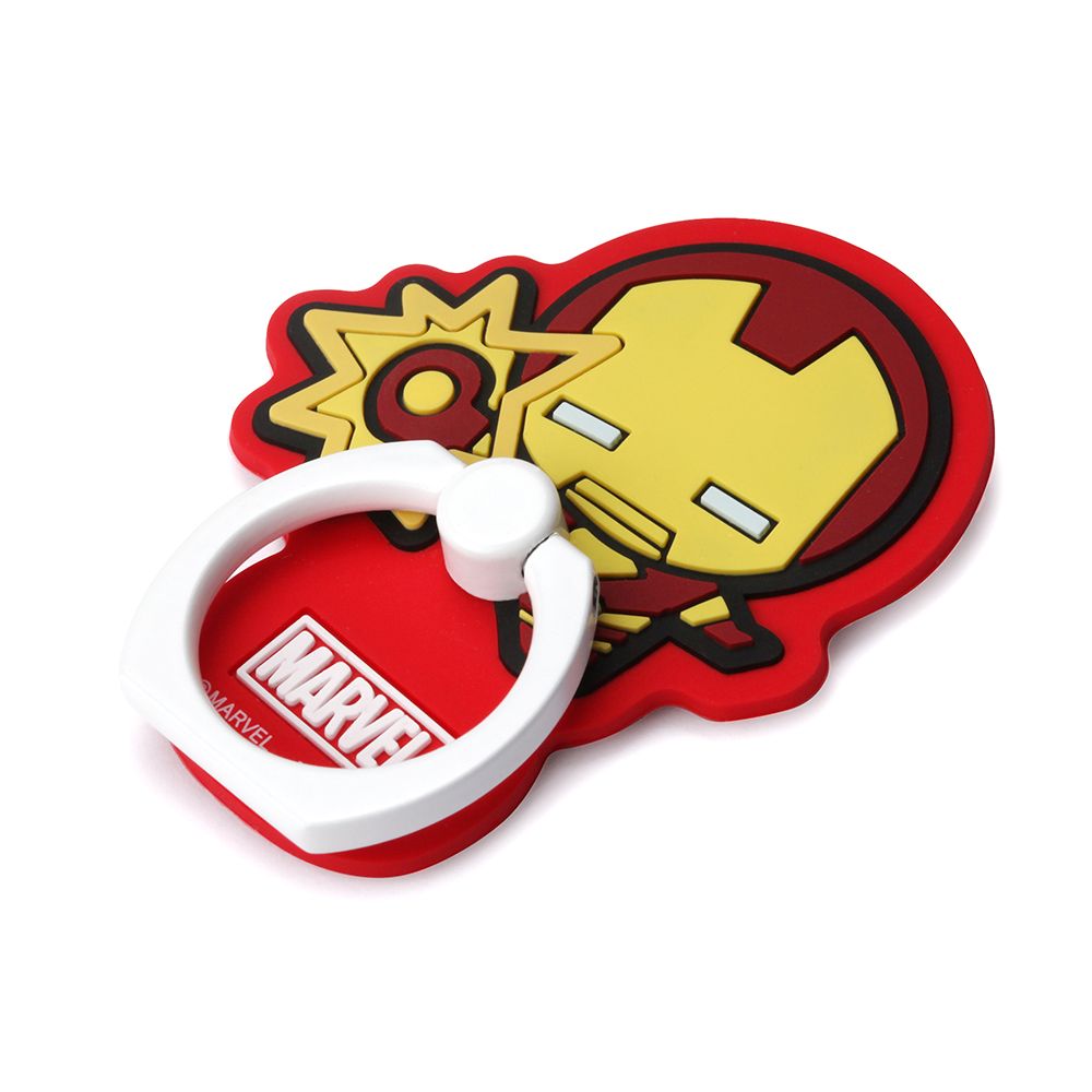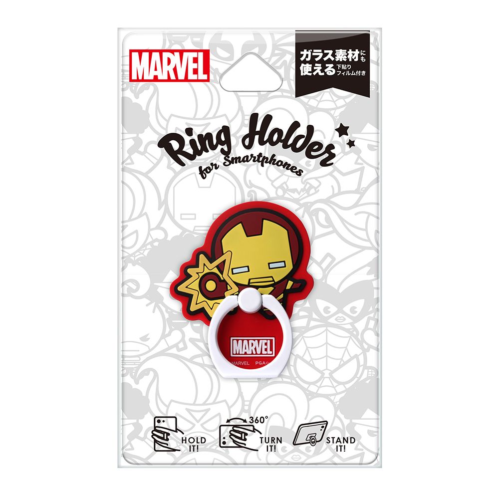 「PG-DRH960IRM」は、「MARVEL」キャラクターのラバー素材のリングホルダーです。スマートフォンをしっかりホールドし、落下を防止。360°回転するリングで動画視聴などに便利なスタンドとしてもお使い頂けます。背面がガラスの筐体にも貼れるよう、下貼りフィルムが付属しています。